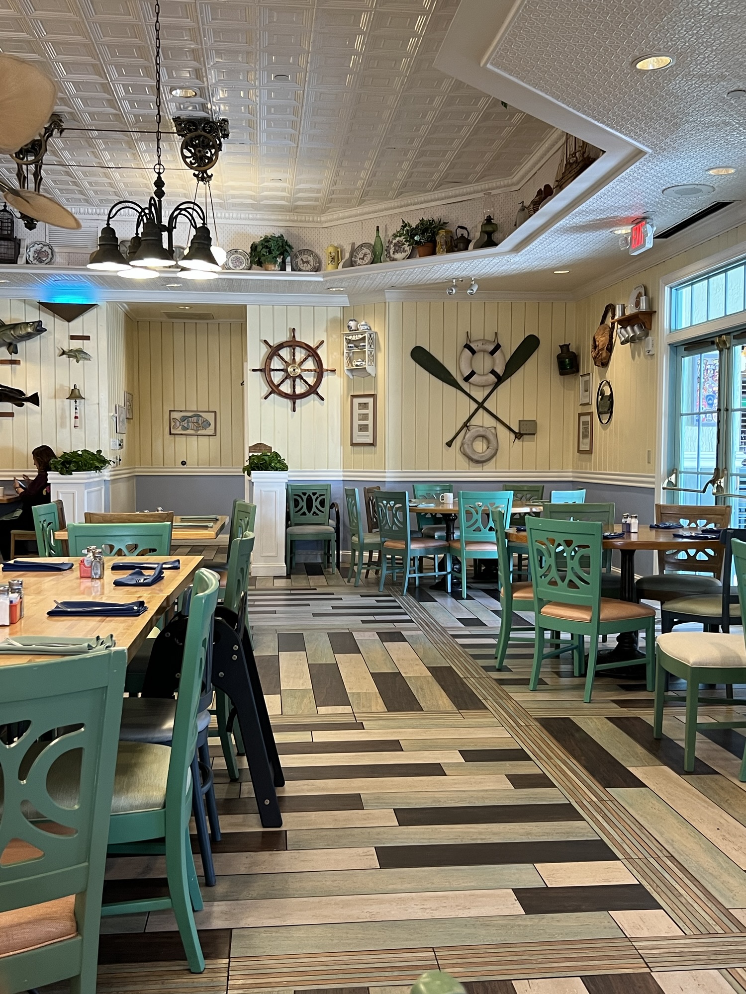 Breakfast here is a must, especially the Buttermilk Chicken and the absolutely heavenly Banana Bread French Toast. These dishes are rich, comforting, and full of that cozy “vacation breakfast” energy. Dinner is just as wonderful, and the warm, nautical atmosphere makes it feel like you’ve stepped into a beloved local spot.